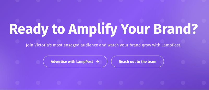 Get your brand in front of Victoria's most active young audience. With over 16K monthly active users, LampPost is the most direct way to engage with an authentic audience, whether you're boosting an event or growing your business.